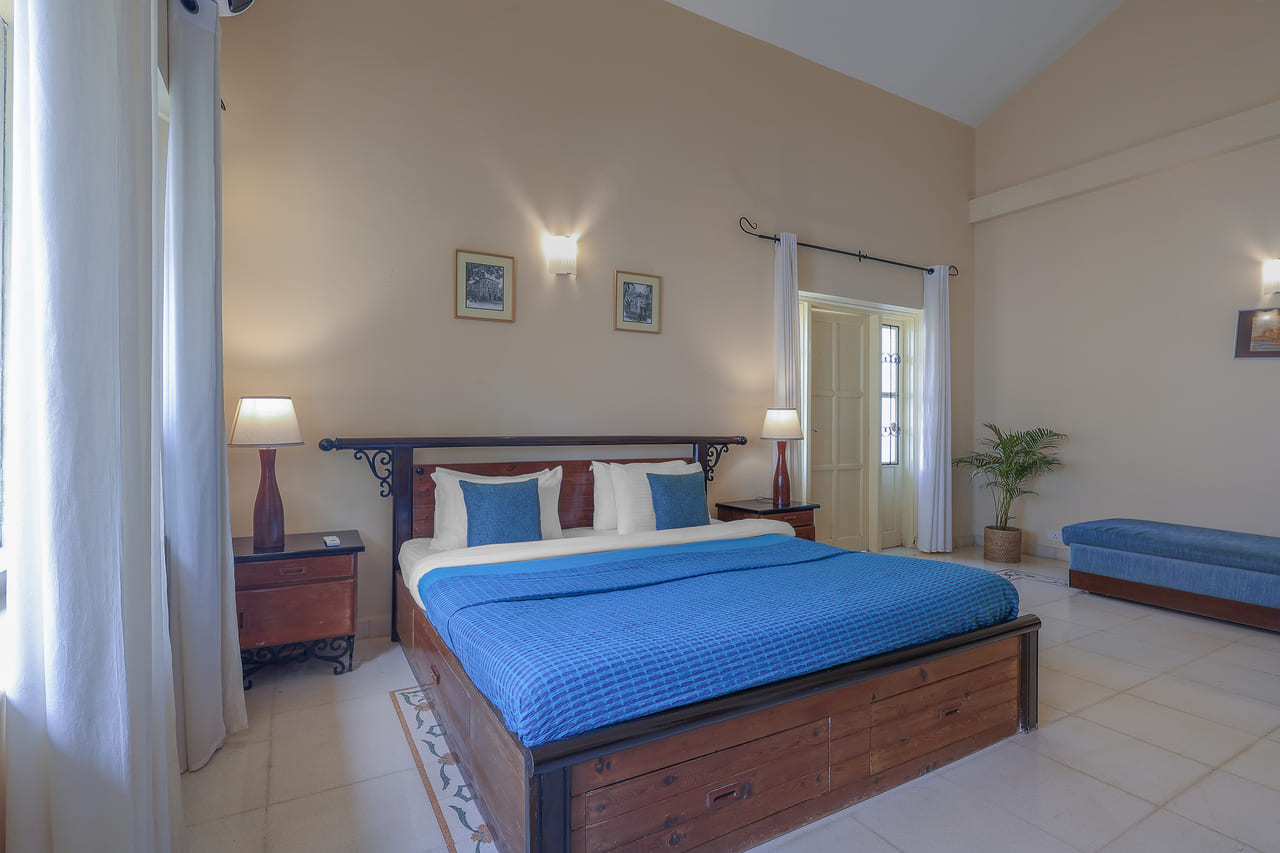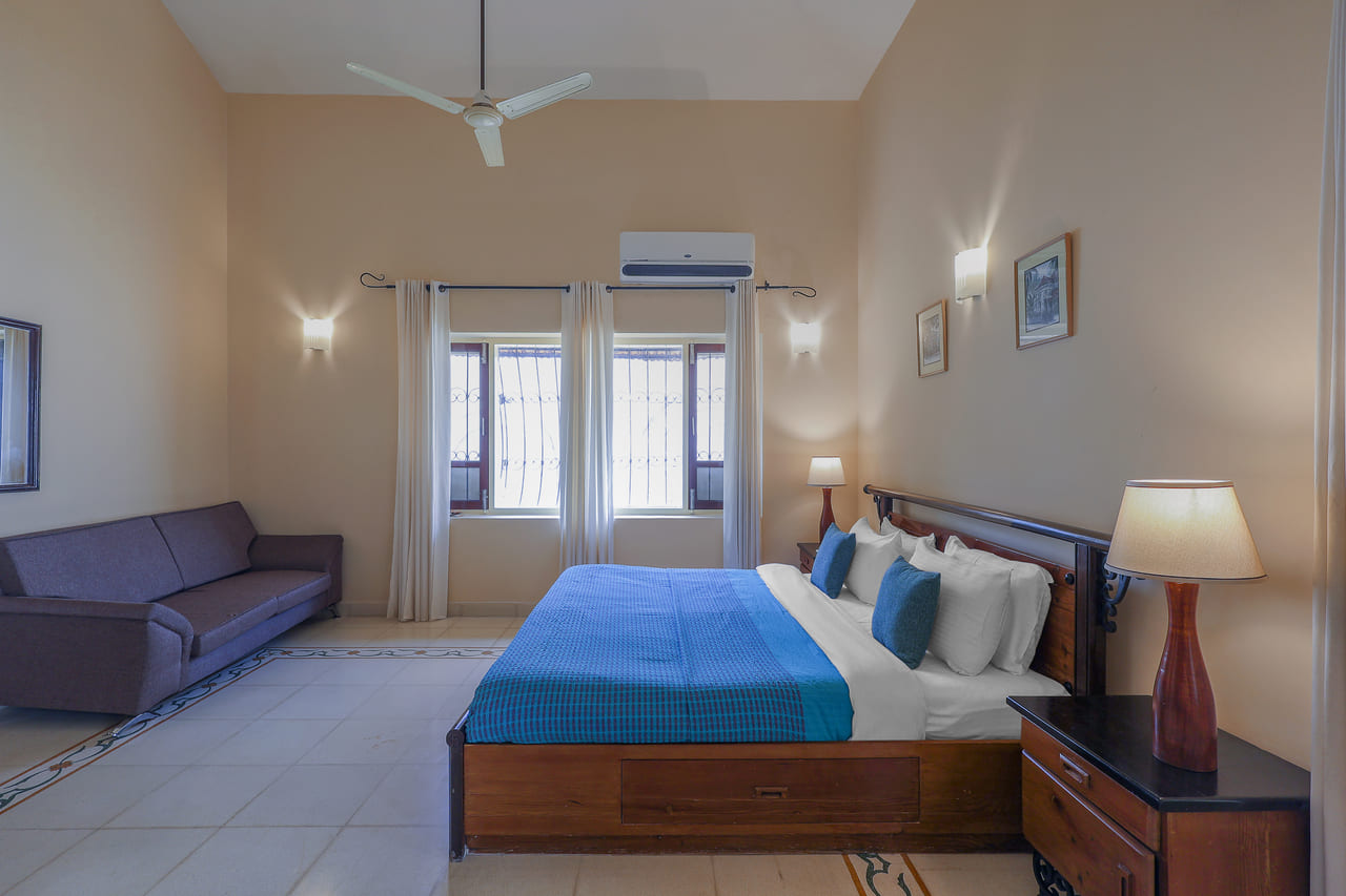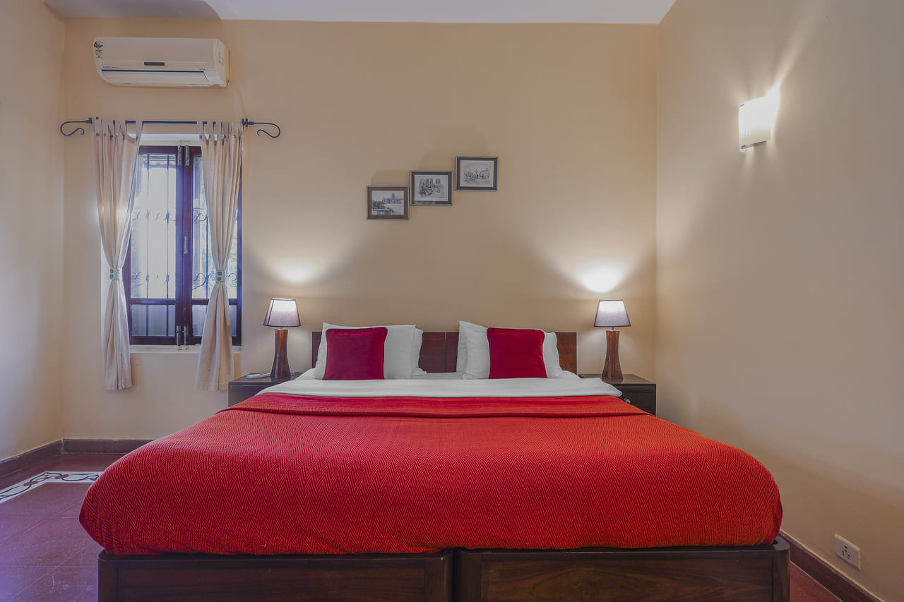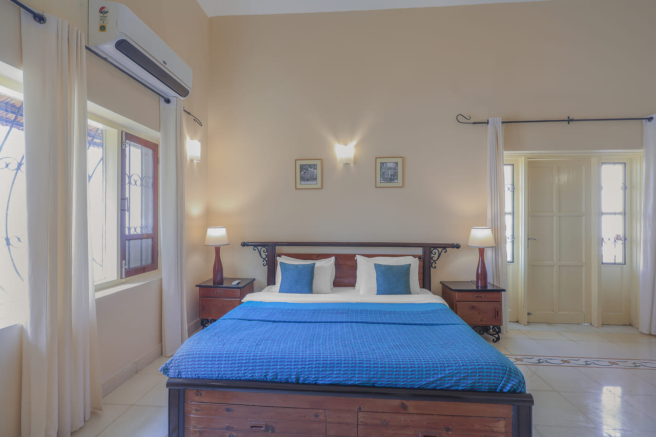 A four bedroom bungalow in the beautiful village of Cavelossim in south Goa, ideal for a family or group of friends, who want to relax and spend quality time together. The house is in modern Goan style with Portuguese tiles adding to the local flavour. One bedroom is on the ground level and three are on the first floor. If you like to cook, you will love the huge kitchen area. The living room is large too and the master bedroom has a balcony attached overlooking the garden area. There is also a fridge, washing machine, 32 inch flatscreen TV in the living room and ample parking for your convenience.