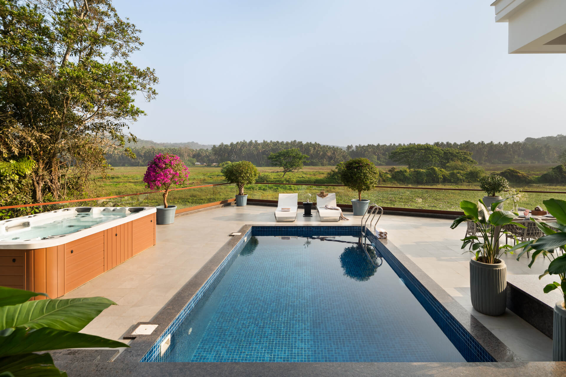 Well like another villa of ours, this one too has centralized heating and air-conditioning systems. An important aspect of the lodging facility which turns it into a level of 5-star property is the swimming pool measuring around 50 feet, the pool is maintained with clean waters that would stimulate non-swimmers,jay-swimmers, and the experienced to jump in nude without hesitation and beat the scorching goa heat.