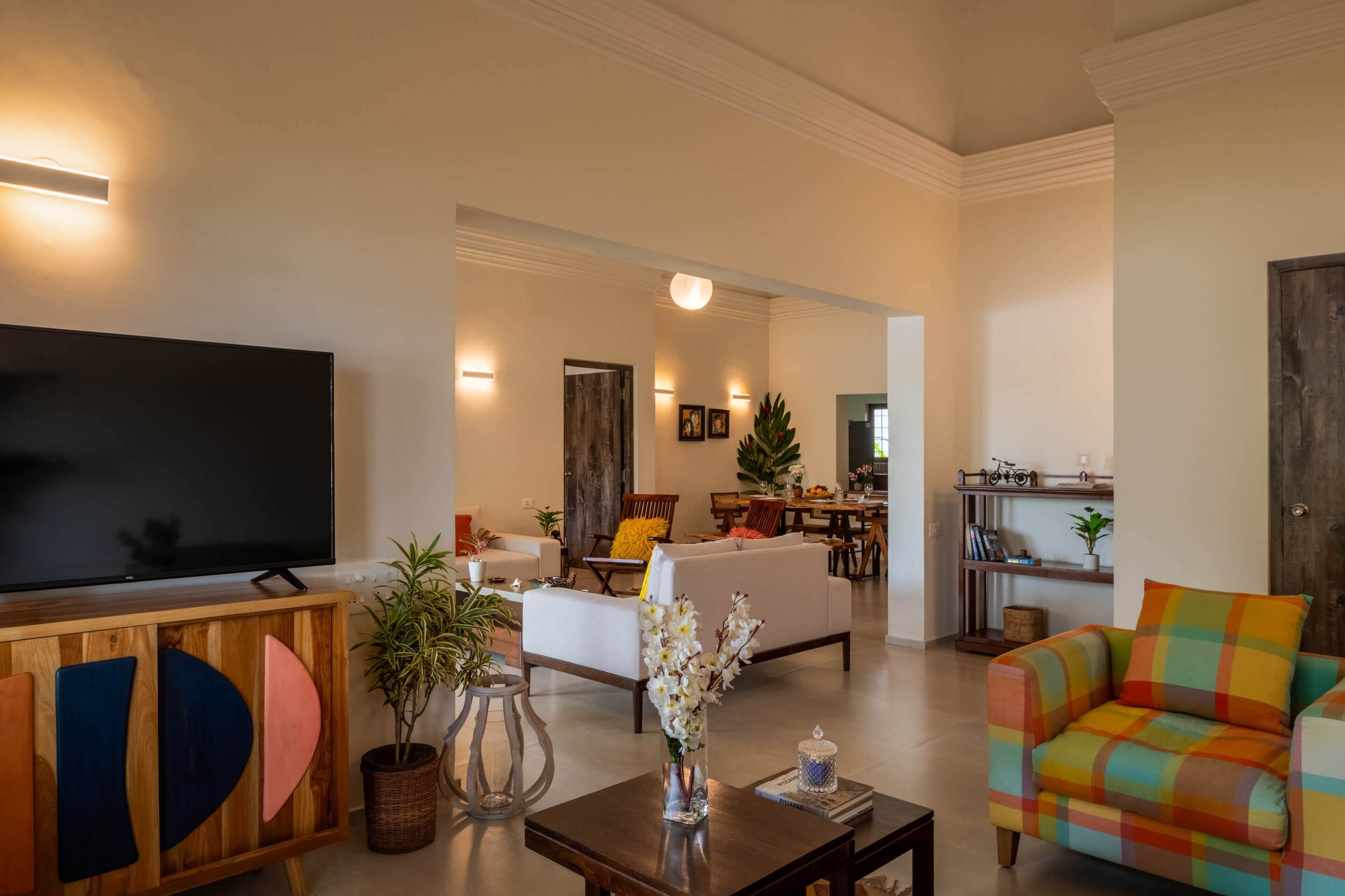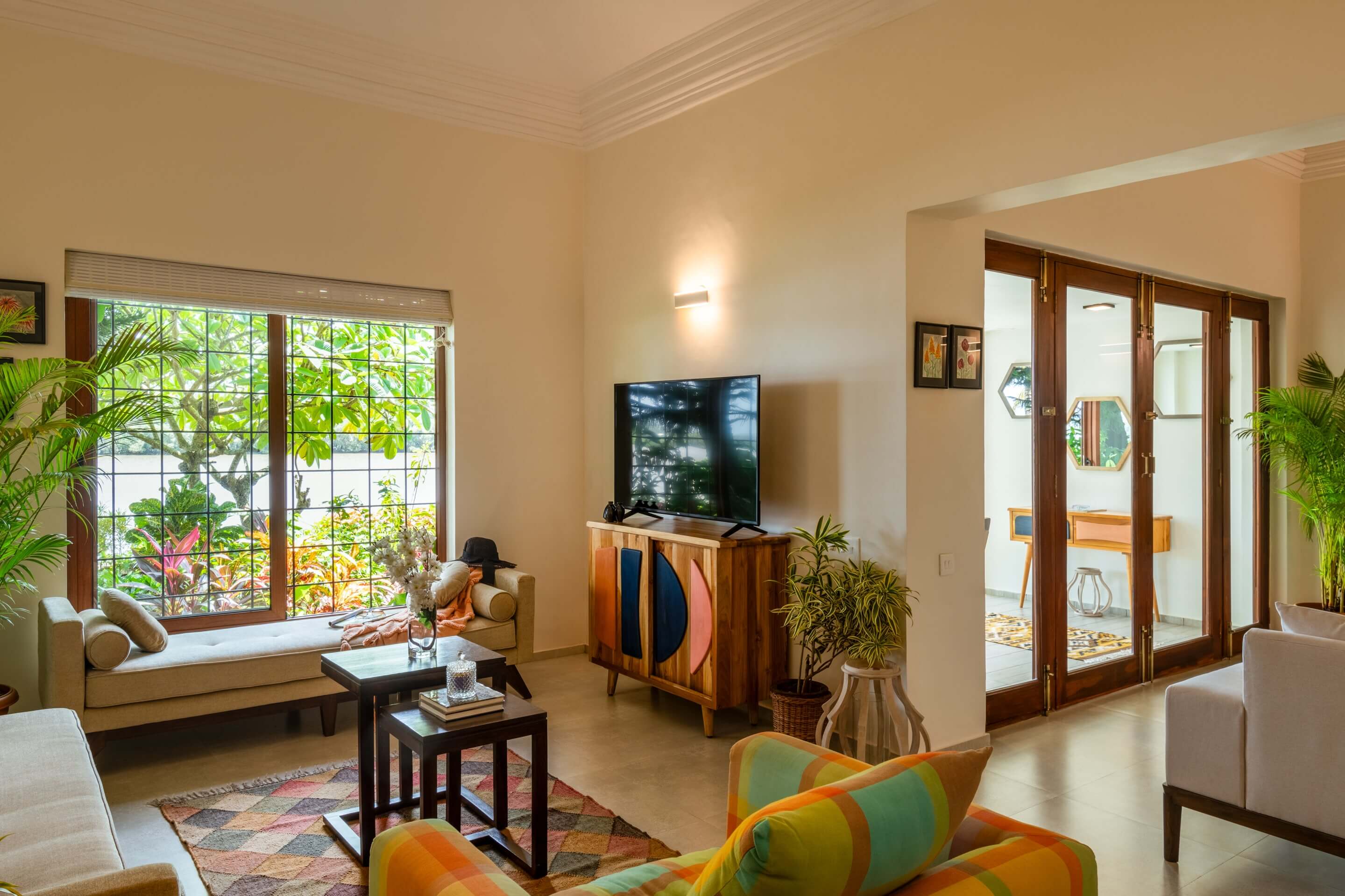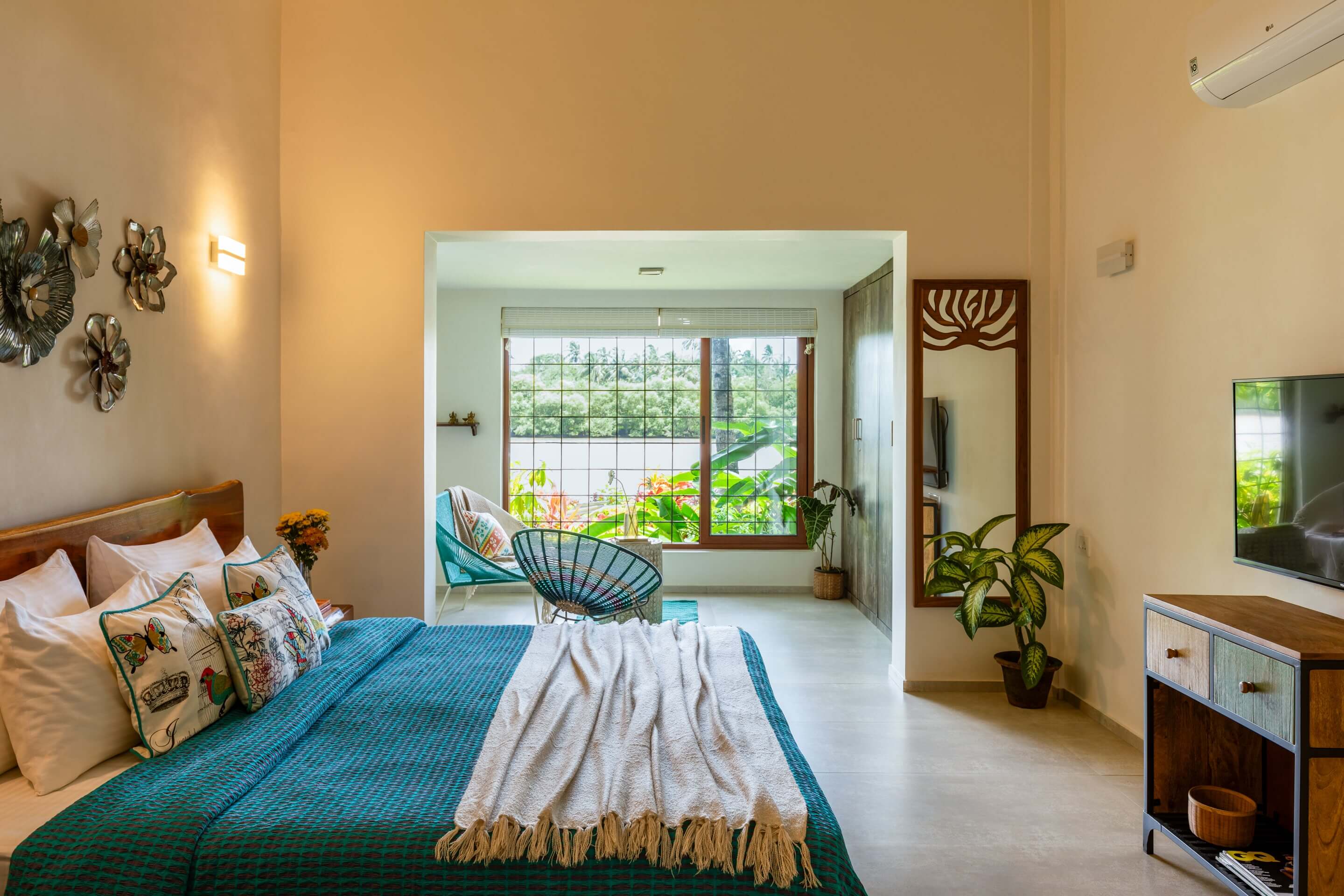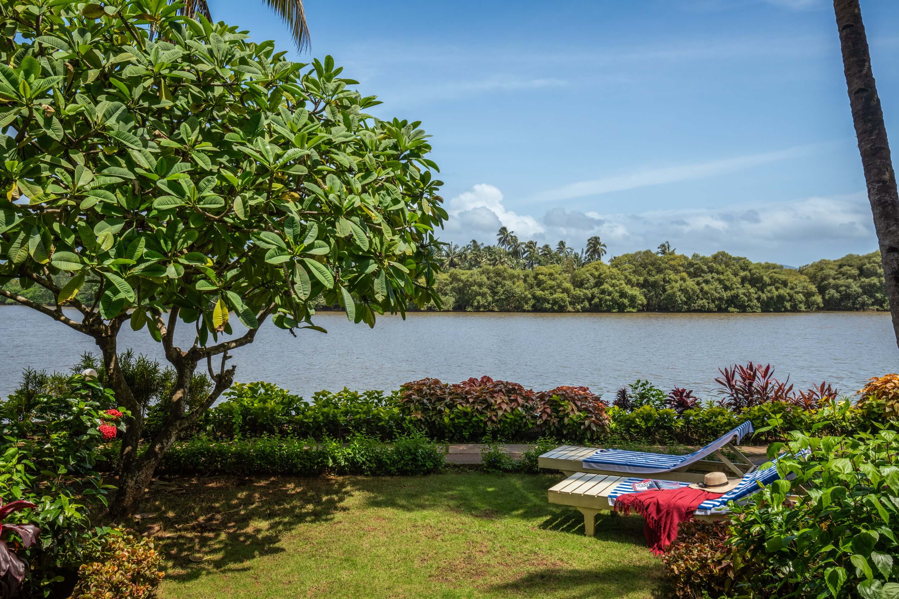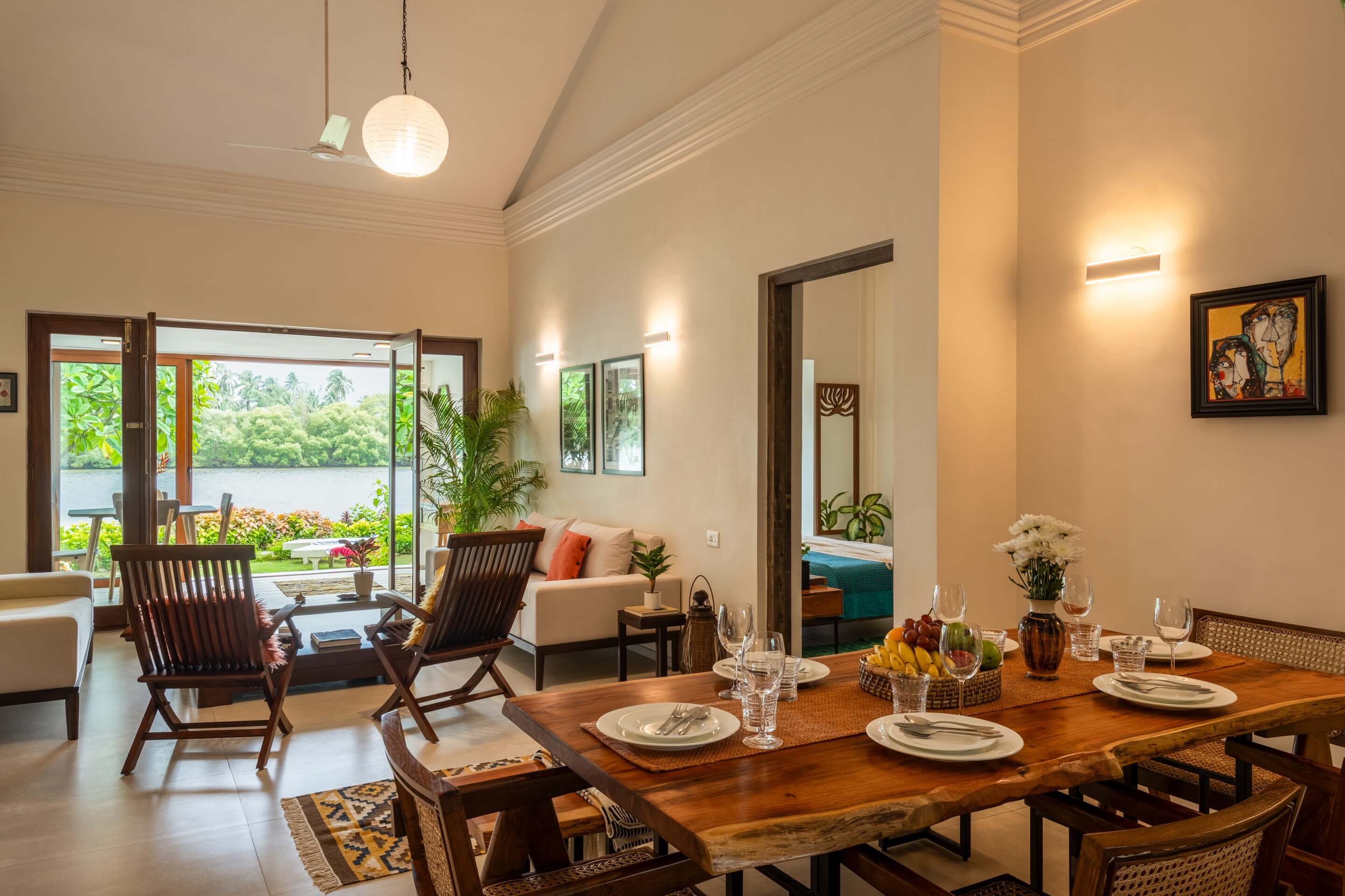 Named for its unbeatable view of the river, this tastefully decorated two bedroom villa features a large living room with two double bed divans (low seating), a separate sofa area and delightful artworks. There are sun beds on the lawn outside for endless reading and sunbathing. There is a dark wood finish to the kitchen and a balcony with comfortable outdoor furniture. The bedrooms have double beds and the villa is outfitted with all the appliances you need including a fridge, TVs, microwave and air-conditioning with back up power. There is a car park space for your use.